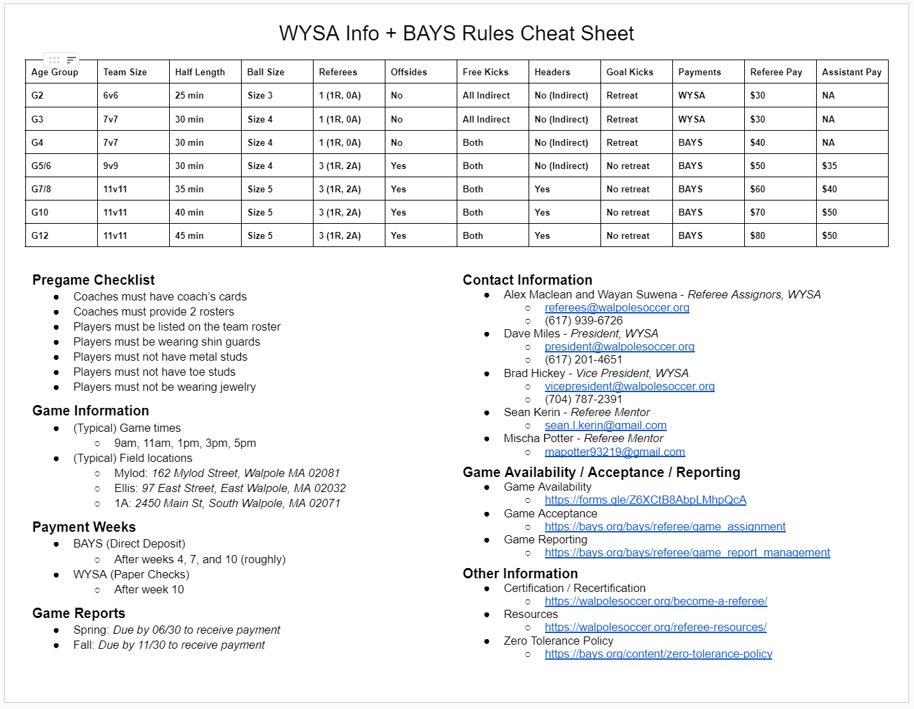 View the WYSA suggestions for each of these items via the Referee Gear Amazon list, but feel free to shop around for better deals elsewhere.